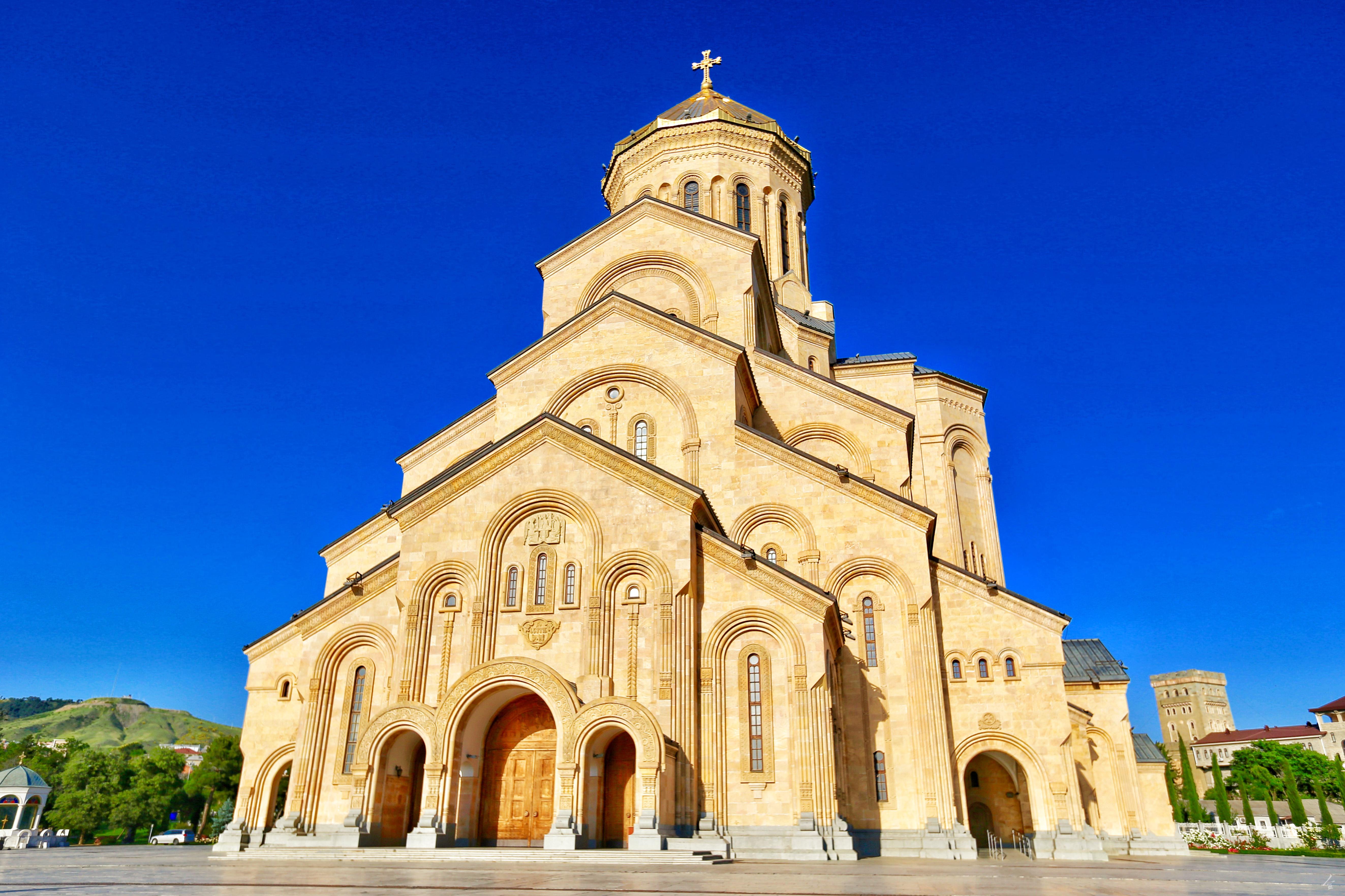 第比利斯的圣三一大教堂是格鲁吉亚东正教总教会所在地。这个1995年开始修建的建筑是高加索地区最大教堂,世界第三大东正教堂。作为第比利斯的地标建筑,圣三一大教堂成为游客必去的打卡点之一。